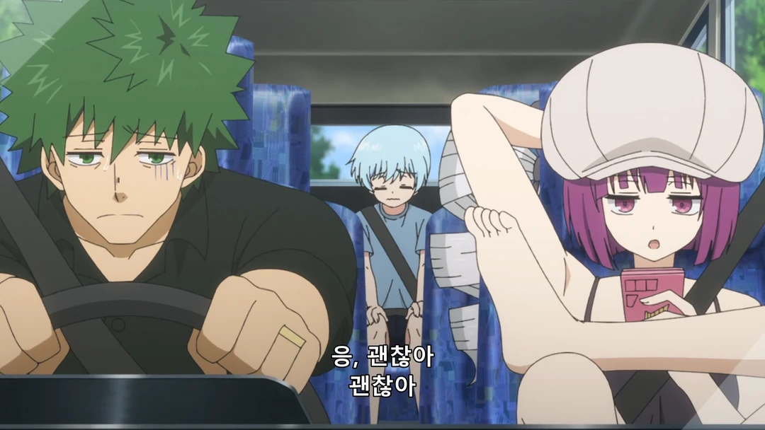 다리를 꼬고 응, 괜찮아~ 괜찮아~.