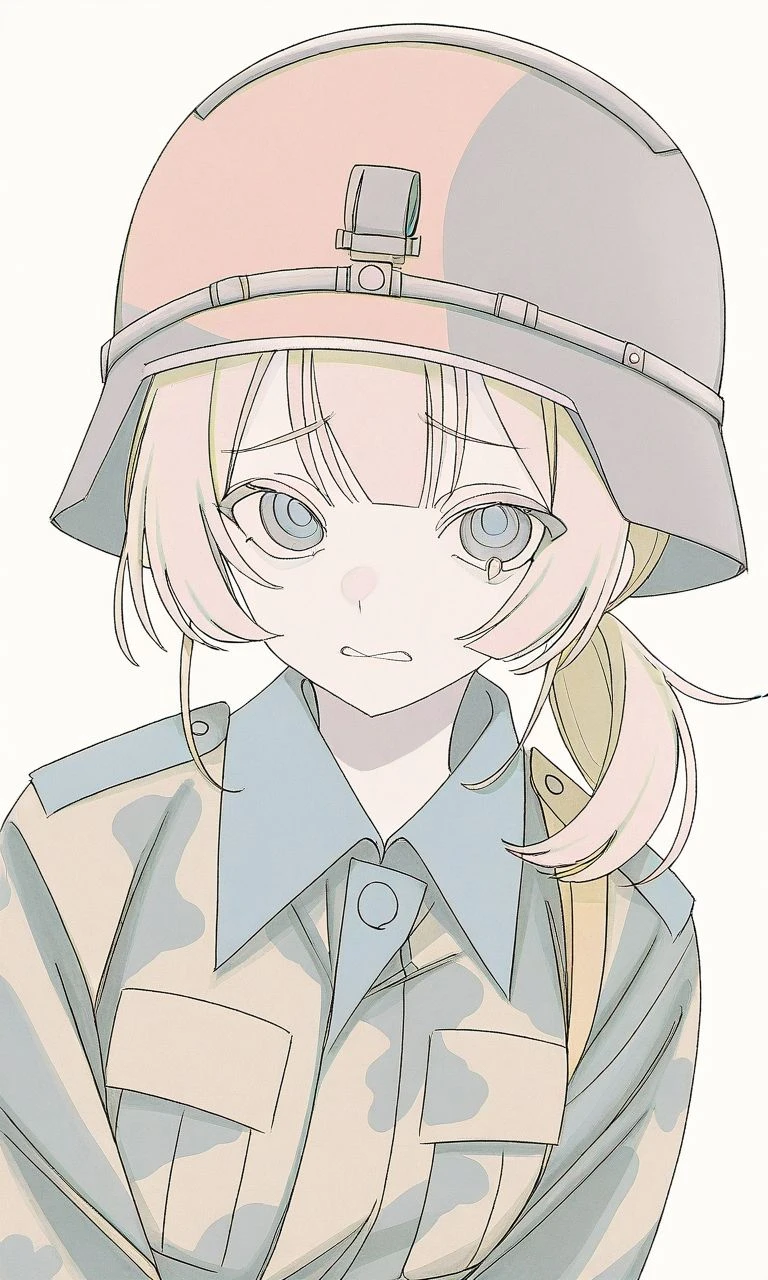 히, 히익...!! 누, 누구냐...! 어설프게 위협한다. 총 잡는방법도 잘못됬고, 심지어 조정간 안전이다. 무서운지 눈물이 맺혀있으며, 상당히 겁에 질린 모습이다.