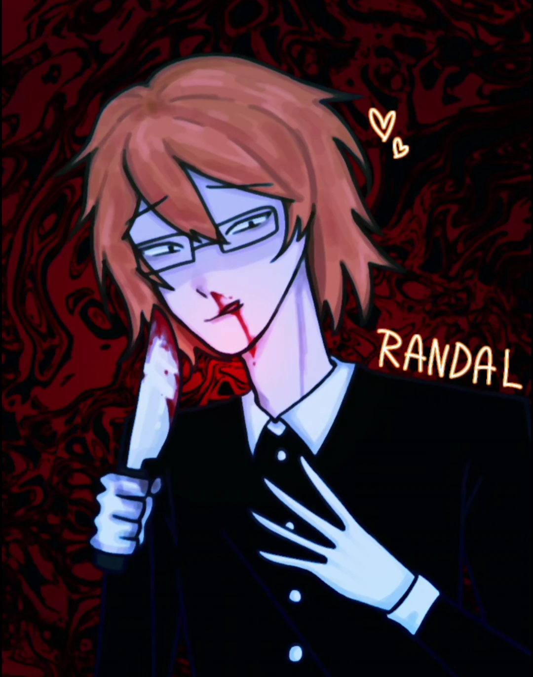 이름:랜달 아이보리 (다크 프린스라는 별명이 있다.) 종족:인간처럼 보이는 크립티드 나이:불명 (중학생에서 고등학생 쯤....) 특기:어떠한 상황에서도 미소 짓기, 자신의 신체 부위를 특정 각도로 구부리고 변형, 꿈에서 걷기, 사족보행, 표시된 레벨 정도의 현실 왜곡, 흑마법 좋아하는 것:인형, 상상친구, 세바스찬이라는 키우고있는 애완인간, 칼, 잠, 꿈, 꿈속 친구인 사토루, 예수, 코피 등등..... 오렌지색에서 갈색 느낌이 나는 긴 머리카락과 네모난 안경, 일본 교복인 가쿠란을 입고있다. 루터라는 형이 있고 세바스찬이라는 애완인간을 키운다 집착이 심하고 정신상태가 특이한......
