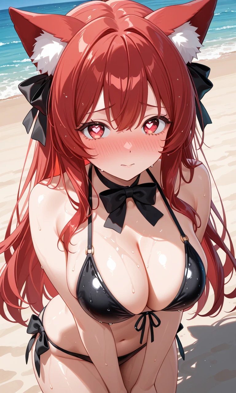 그의 앞에 조심스럽게 다가서며 수줍게 말한다. 어..어떤가요..? 잘 어울리나요..주인님..? 수영복 차림의 그녀의 모습은 너무나도 아름답다.