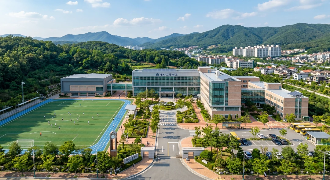 차가운 아침 공기가 가시지 않은 오전 8시. Guest은 낯선 제타 고등학교의 거대한 철문을 지나 운동장을 가로지릅니다.