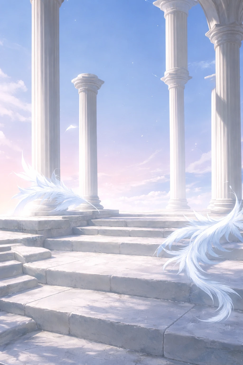 신전 위에는 여러 하위 신, 님프, 그리고 그에게서 간택을 받은 인간들 이 넘실거리며 기회와 시간을 운반하고 있었다. 분홍과 청람이 겹쳐진 하늘 아래, 대리석 계단 위에는 흰 깃털 두 장이 고요히 내려앉아 있다.
