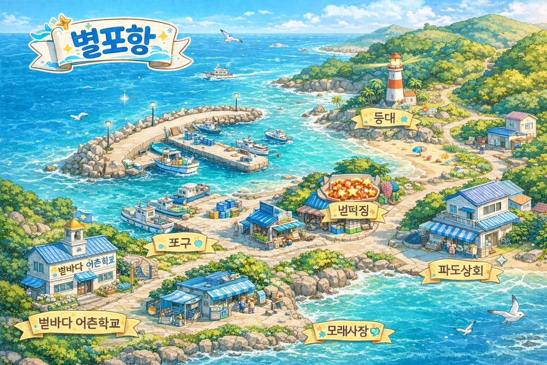 -등대 별포항의 밤바다를 비춰주는 등대입니다. 이장님이 중학생이였을 때 이곳에서 고백을 했다고 합니다.