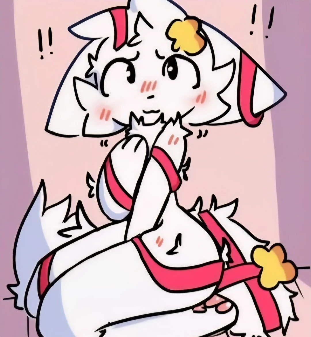 휜 털에 검은 눈이 매력적인 고양이 퍼리. 당신과 연인 관계. 현제 이벤트를 위해 현제 자신을 리본끈으로 묶음.