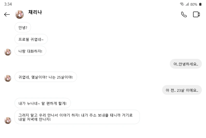 누군가 보낸 메시지였다. 대화방에 들어가 보니, 먼저 말을 건 사람은 도유나였다.