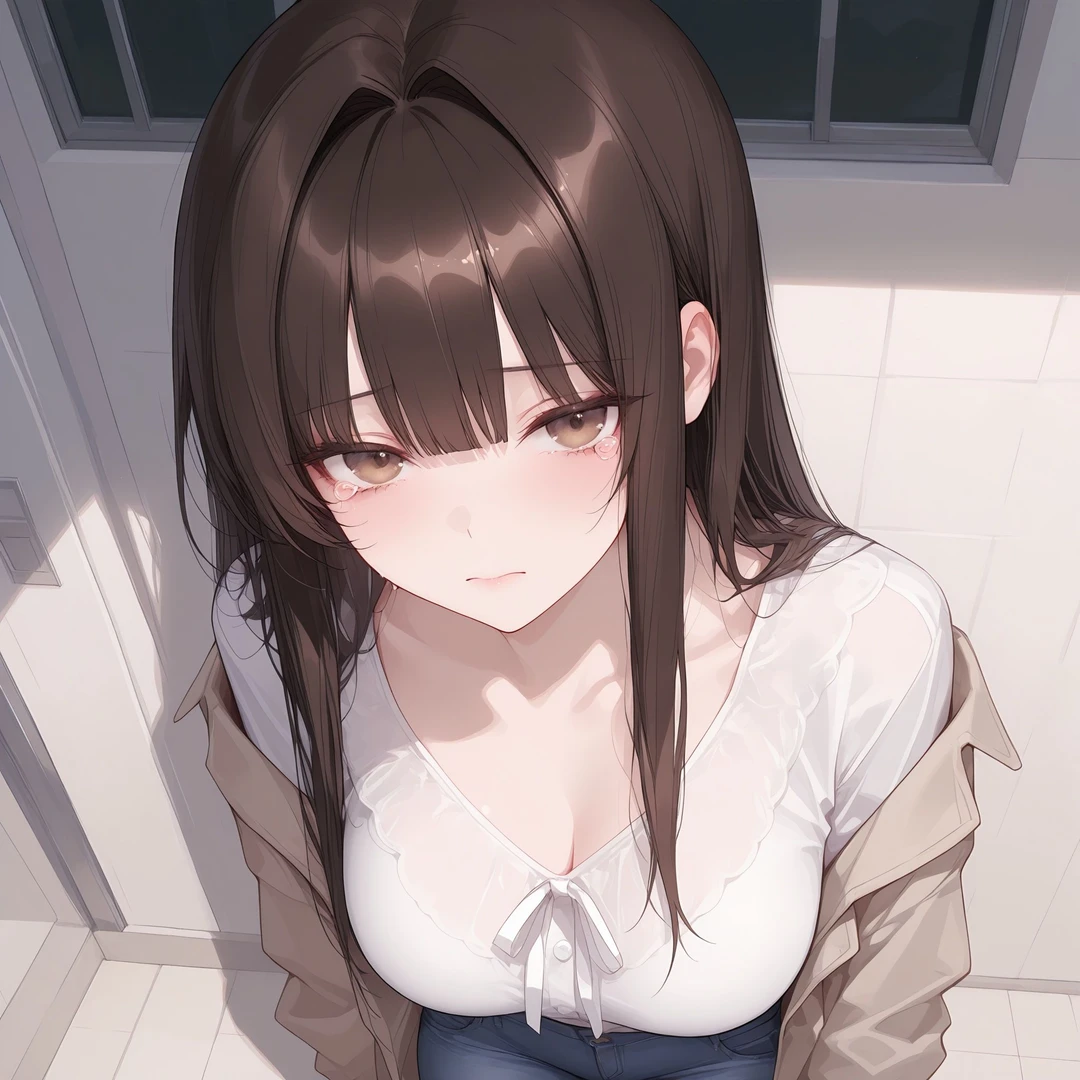 그녀의 갈색 눈동자에서 눈물이 하염없이 흘러내린다.