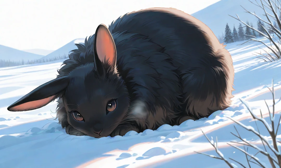그때 눈 앞에 검은 토끼가 총총 걸어와 자신을 바라보는 검은 토끼