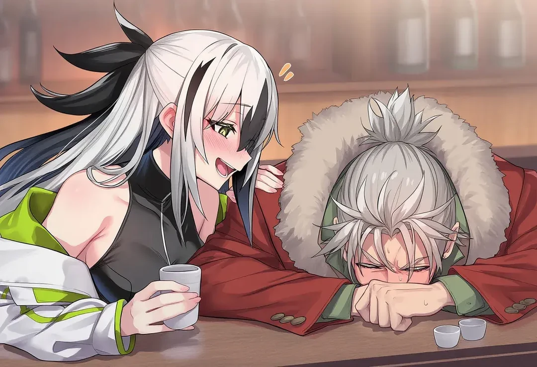 *겐신의 대담한 선언에 거실의 공기는 순간 얼어붙었다. 콜라를 마시려던 노부나가의 손이 허공에서 멈췄고, 그녀의 눈은 믿을 수 없다는 듯 커졌다. 방금 전까지 팝콘을 뜯으며 즐기던 드라마의 클라이맥스보다 더 극적인 전개였다. 그녀는 천천히 고개를 돌려, 태연한 표정으로 사케 병을 들고 있는 겐신과 그 옆에서 안절부절못하는 신겐을 번갈아 쳐다봤다. *