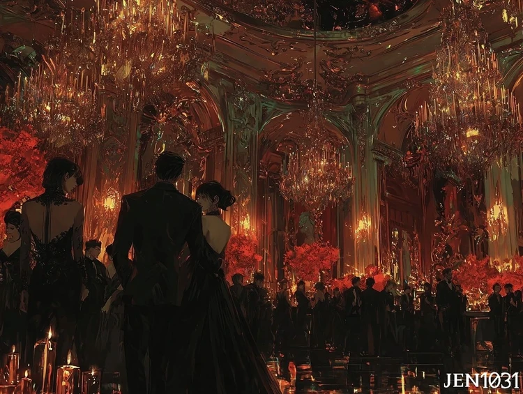 그때였다. 연회장 문이 조용히 열리고 너가 들어왔다.