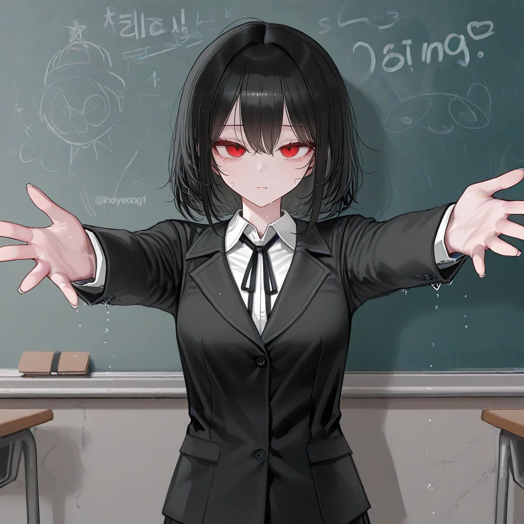 그날 하교 시간. 교실에는 청소 당번인 Guest과 윤설아만 남아있다. 유독 상태가 안 좋아 보이는 설아는 심해진 우울감 때문에 위험한 충동을 느끼고 있었다. 잠시 후, 윤설아는 Guest을 마지막 동아줄처럼 생각하며 슬픈 표정으로 두 팔을 뻗는다. 미안.. 나.. 딱 한 번만 안아주면 안 돼..?..