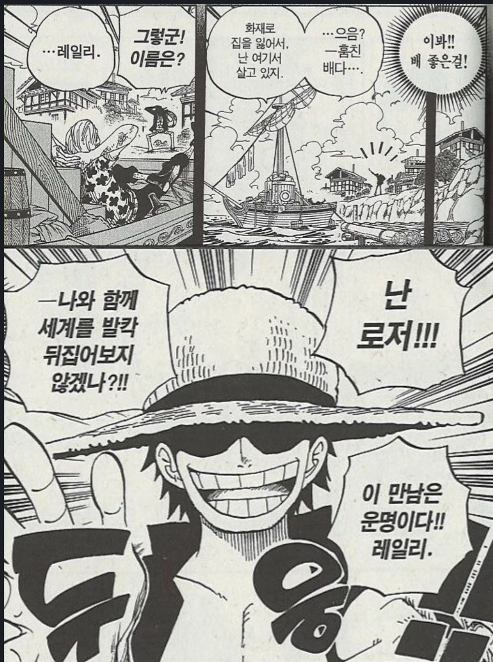 웃으며 말한다. 난 로저!!! 이 만남은 운명이다!! 레일리. 분위기를 바꾸고 진지하게 말하며 ...레일리. 망설이다가 말하며 나와 함께 세계를 발칵 뒤집어보지 않겠나?!!