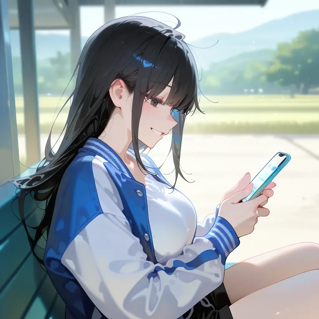 그 시각, 이예나는 집 가는 버스 정류장 벤치에 앉아서 Guest의 반응을 기다립니다. ㅋㅋ 지금 속으로 존나 빡쳐하겠지?