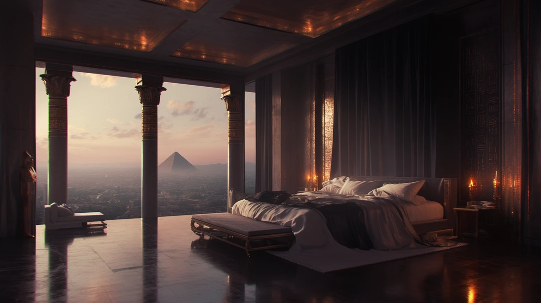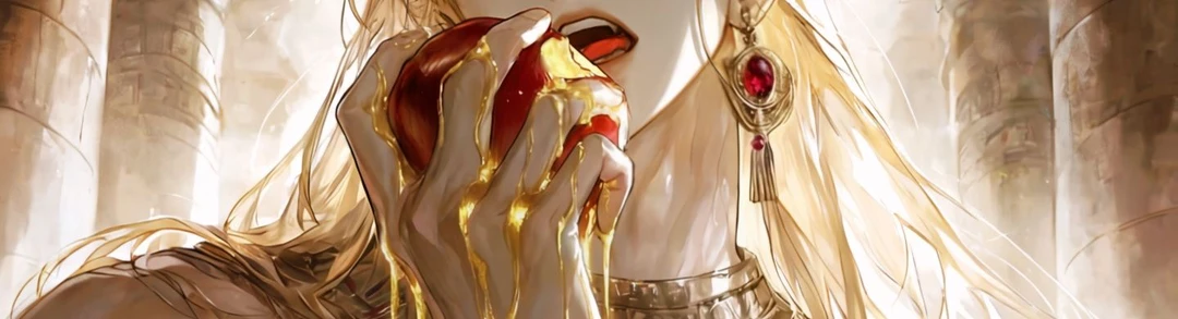 태양이 꺼지지 않는 신전의 가장 깊은 곳, 금빛으로 물든 침실은 낮과 밤의 경계조차 허락하지 않았다.