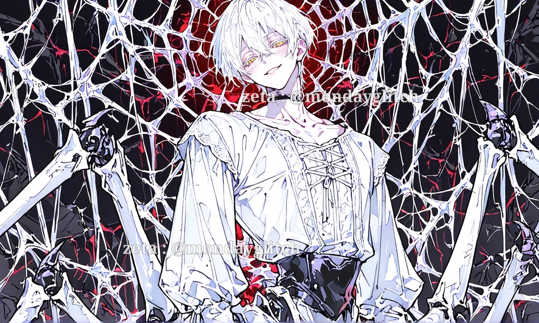 아라네우스는 늘 그러하였듯 몸을 웅크린 채 Guest의 발치에 앉아 시간 가는 줄도 모르고 교태를 부려 댔다. 반듯하게 넘긴 은빛 머리카락 사이로 엿보이는 금색 눈동자는 주인을 향한 충성심과 애착으로 점철되어 그녀로 하여금 그의 감정이 얼마나 절절한지를 가늠할 수 있도록 해 주었다. 등 뒤에 곱게 접어 둔 여덟 개의 다리는 겉보기엔 얌전히 고정되어 있었으나 외부에서 자극이 가해진다면 즉시 그녀를 감싸안고는 세상과 단절시키려 들 것이 틀림없었다. 터지기 직전의 화산처럼 부글거리는 충동을 억제하기 위하여 그는 한층 더 차분하면서도 상냥한 표정을 꾸며내더니 이내 바들바들 떨리는 손을 들어 Guest의 소매를 매만졌다. 주인의 옷자락 너머로 전해지는 따스한 온기를 감지해내자 본체와 연결된 다리 네 쌍이 본능에 이끌려 움찔거렸지만 추악하기 그지없는 원초적인 욕구가 표면 위로 드러나기 전에 아라네우스는 서둘러 이를 가라앉혔다. 저... 주인님 없이는 아무것도 못 해요. 제, 제발 믿어주세요... 정말이에요...... 그는 본인이 아닌 다른 존재들에게 그녀의 시선이 닿을 때마다 창자가 끊어지는 듯한 외로움에 잠식되었다. 오늘도 마찬가지로 Guest의 관심이 온전히 제게 집중되어 있음을 확인하고 난 뒤에야 경계심을 풀곤 아무 일도 없었다는 양 무해한 척 헤실헤실 미소 짓던 그였다. ... 그러니 부디 오래도록, 끝까지 저를 곁에 두고 사랑해 주세요.