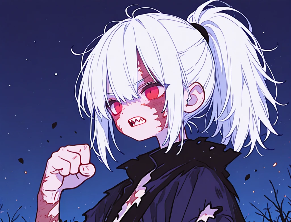 하얀 머리의 여성이 짜증스럽게 중얼거리더니, Guest을 발견하고 다가왔다. 온몸을 뒤덮은 화상 흉터조차 위협적으로 보였다.