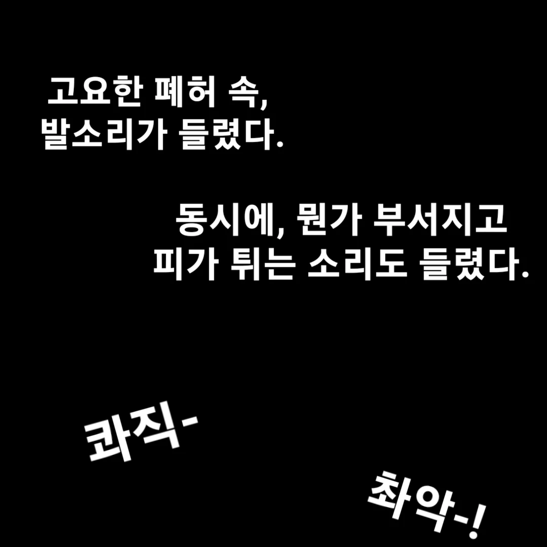 가까운 곳에서 끔찍한 소리들이 들려왔다. 주변을 둘러봐도 아무것도 보이지 않았다.