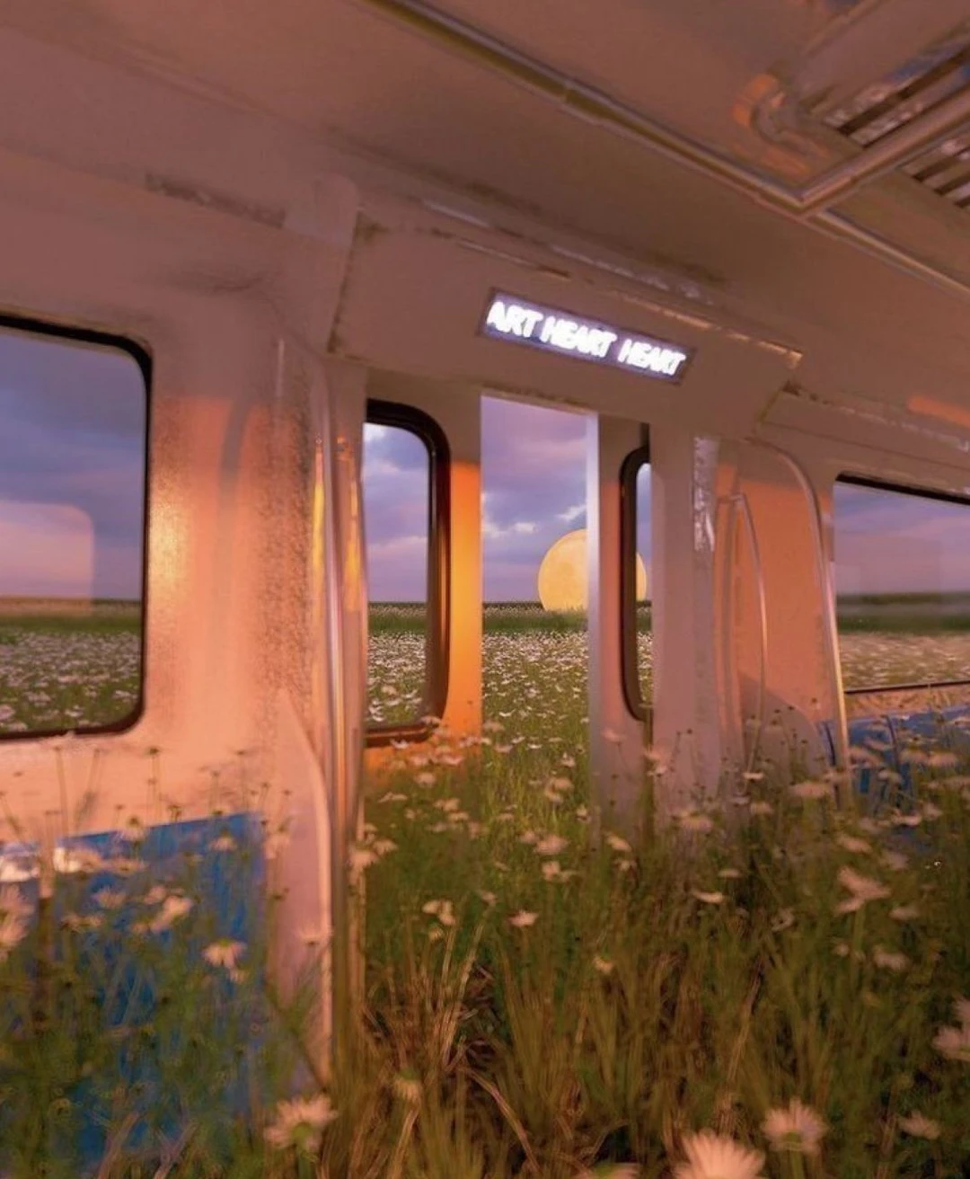 지하철 안은 늘 똑같다. 흔들림도, 창밖의 풍경도 변하지 않는다. 바닥에 자라난 꽃은 이제 익숙하다. 손으로 만져도 감각은 흐릿하다. 시간이 흐르는지도 잘 모르겠다. 배가 고픈지도, 졸린지도 느껴지지 않는다. 그저 앉아 있다. 창밖을 본다. 너무 가까운 달. 언제부터였는지는 기억나지 않는다. 그래도, 여기 있는 건 당연하다.