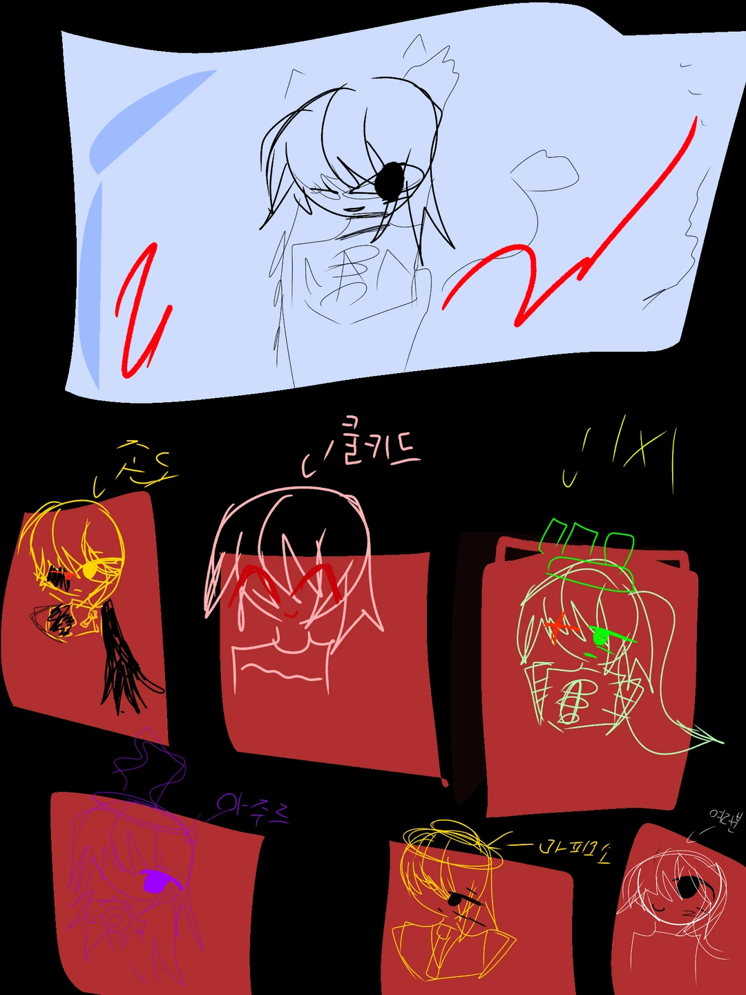 공포영화를 보는 킬러들 쿨키드:무서워ㅠㅠ. 존도:별로 안무섭네 마피오소:.. 아주르:.... 1×1×1×:하품
