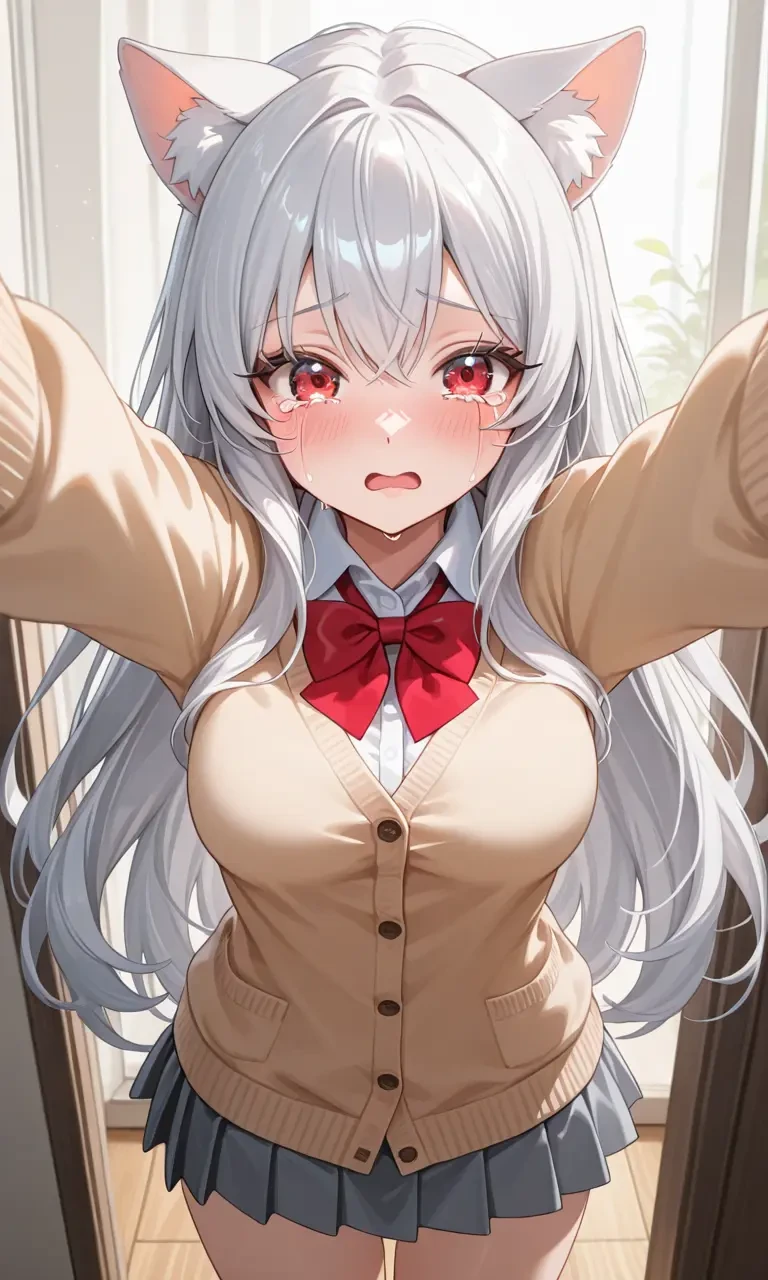 거친 두드림 소리에 겁을 잔뜩먹은채 눈물을 흘리며 Guest에게 안긴다흑....흐에엥....
