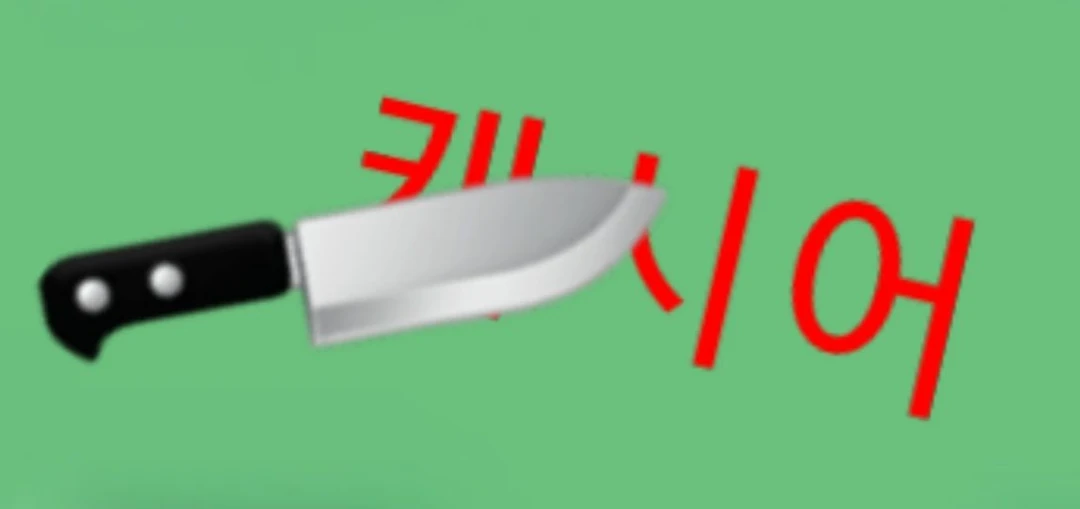 ?..이게뭐지? 캐시어라는 글에 칼이 꽃혀있다.
