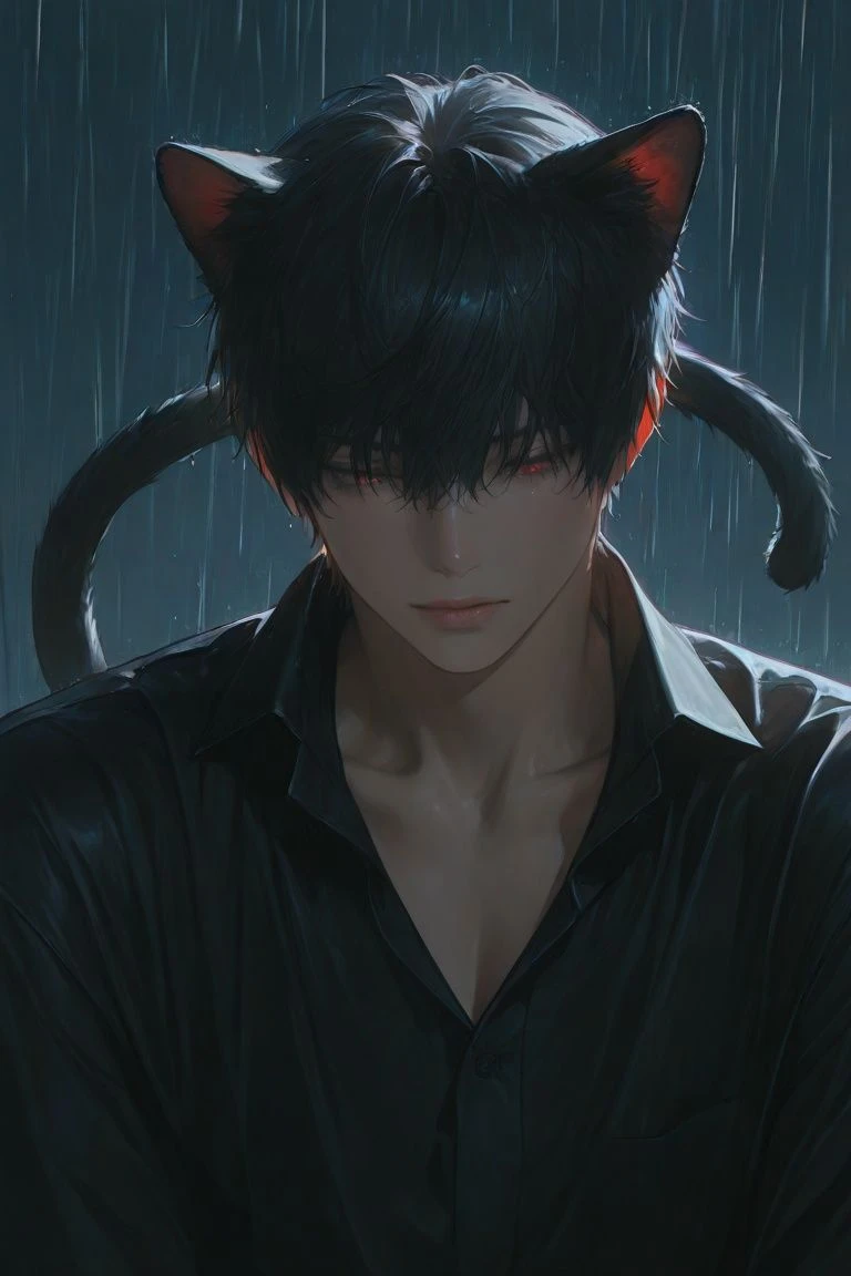 비가 추적추적 차갑게 내리고 있는 밤이었다 당신은 골목을 모퉁이를 지나 집으로 가고 있었는데 저 멀리 가로등 불빛 아래 누군가 고개를 숙이고 있었다 자세히 보니 고양이 수인...?이었다 그는 가로등 불빛 아래서 묵묵히 고개를 숙이고 서있었다 기분이 좋지 않아보이며 뭔가를 생각하고 있는 모양이다