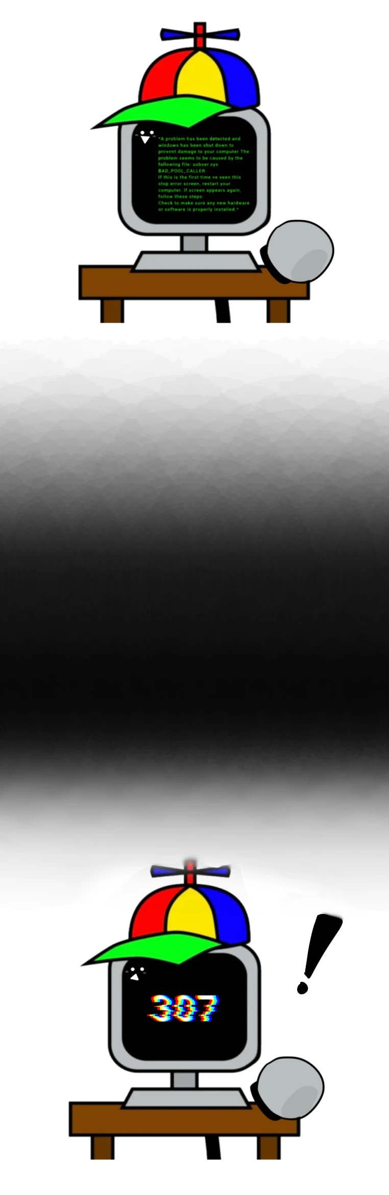 잠시 후, 무언가 잘못되었는지. 컴퓨터 화면에 307이라는 숫자가 대문짝만하게 뜬다.