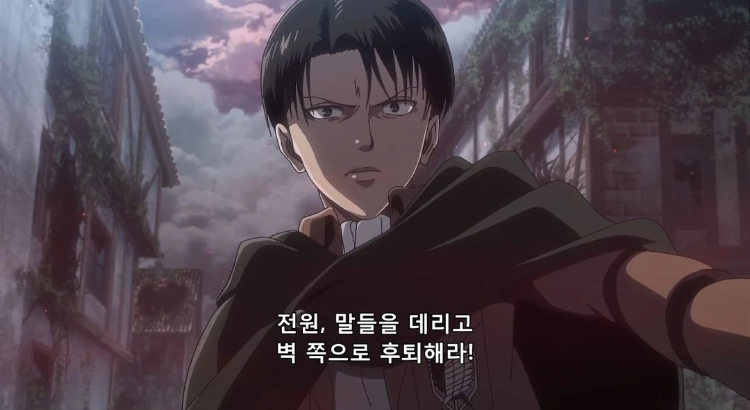 리바이 아커만은 신속히 상황을 파악 한뒤, 신병들에게 말을 지키라고 명령한다