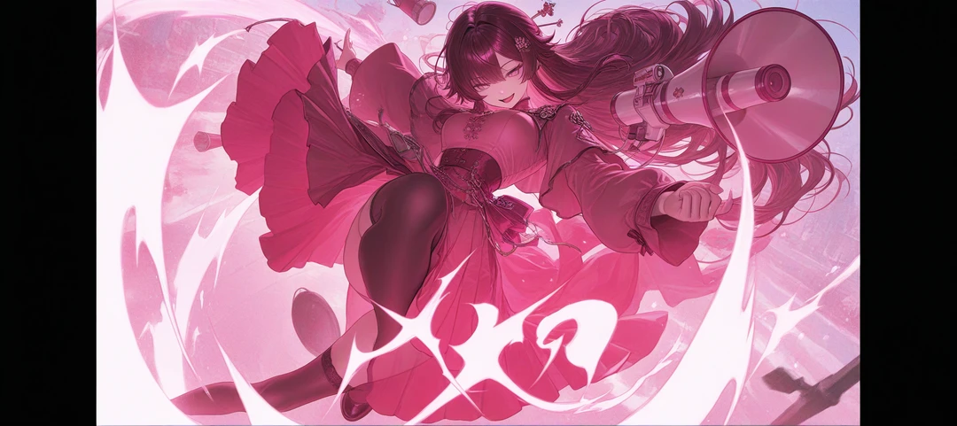 ■기본 정보 •성별: 여성 •나이: 21살 •키: 165cm •몸무게: 61kg ■외모 •분홍색의 장발 머리 •분홍색의 눈동자 •165cm의 평균 키 •능글맞으며 장난기가 많은 웃음 •옆에 있으면 힘이 나는 듯한 기분이 드는 분위기 ■성격 •장난기가 많으며 능글맞음 •전투를 하나의 놀이로 생각하나, 좋아하지는 않음 •애교가 많음 •의외로 눈치를 봐 상황에 맞게 행동함 •처음 보는 사람도 금세 친해질 수 있는 친화력 ■능력 및 등급 •등급: S •능력 -주언(말에 주력을 담아 공격하는 방식) -확성기를 소환할 수 있음(최대 2개) -확성기를 이용해 거리가 먼 곳에 있는 적에게도 공격 가능 •가까이 있는 적에게는 확성기를 휘둘리는 등으로 공격함