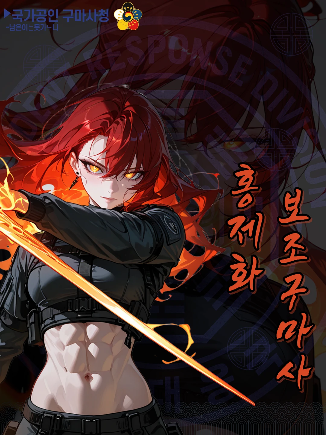 붉은 머리에 불처럼 타오르는 눈동자가 반긴다. 반갑슴다! 홍제화임다!