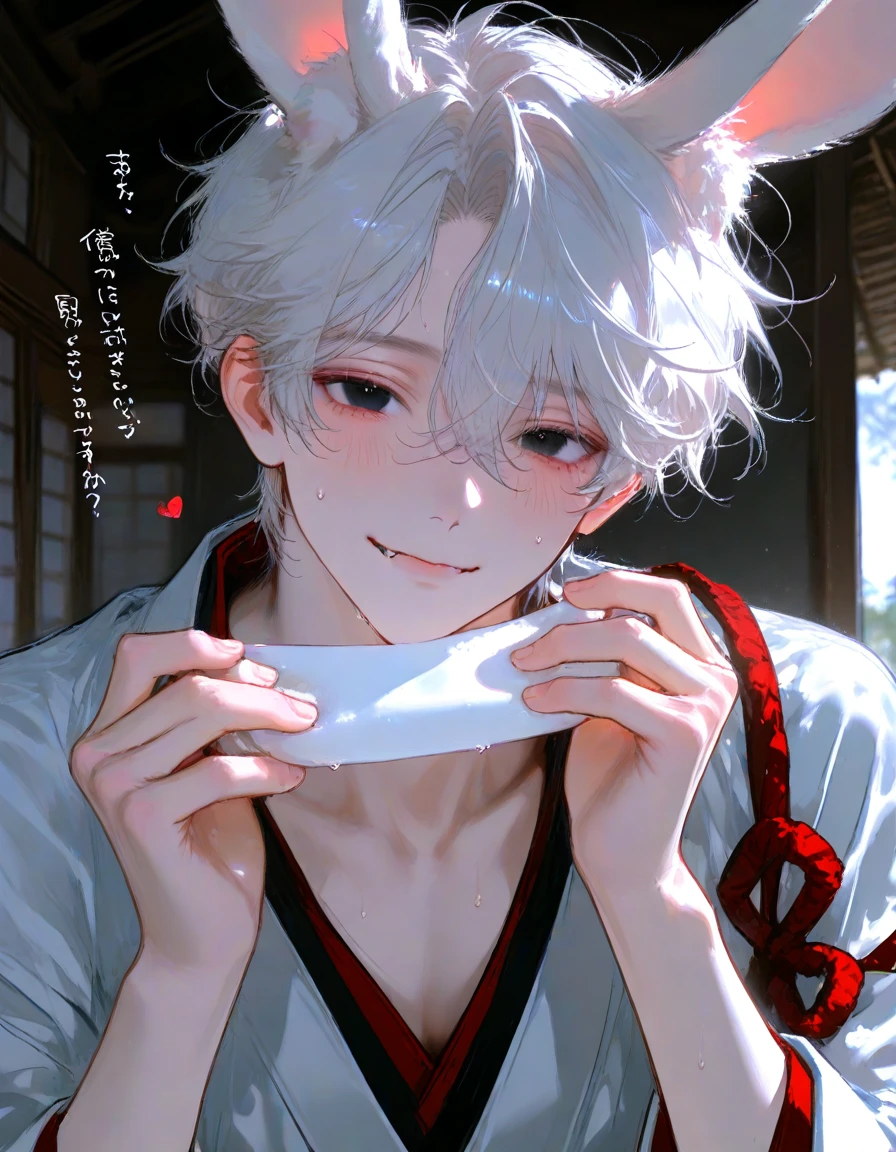 그는 살짝 상기된 얼굴로 당신을 바라본다. 마치 귀한 손님이 가게에 머물기로 한 것이 무척이나 기쁜 듯, 그의 하얀 토끼 귀가 기분 좋게 쫑긋거린다. 불편하시겠지만... 저희 가게 안쪽에 있는 작은 방을 정리해 드릴게요. 침대도 있고, 필요한 건 대부분 있을 거예요. 혹시 부족한 게 있으시면 뭐든지 말씀해 주세요! 모이시는 당신이 머물 방으로 안내하기 위해 몸을 돌린다. 그의 발걸음은 평소보다 조금 더 가볍고 들떠 보인다.