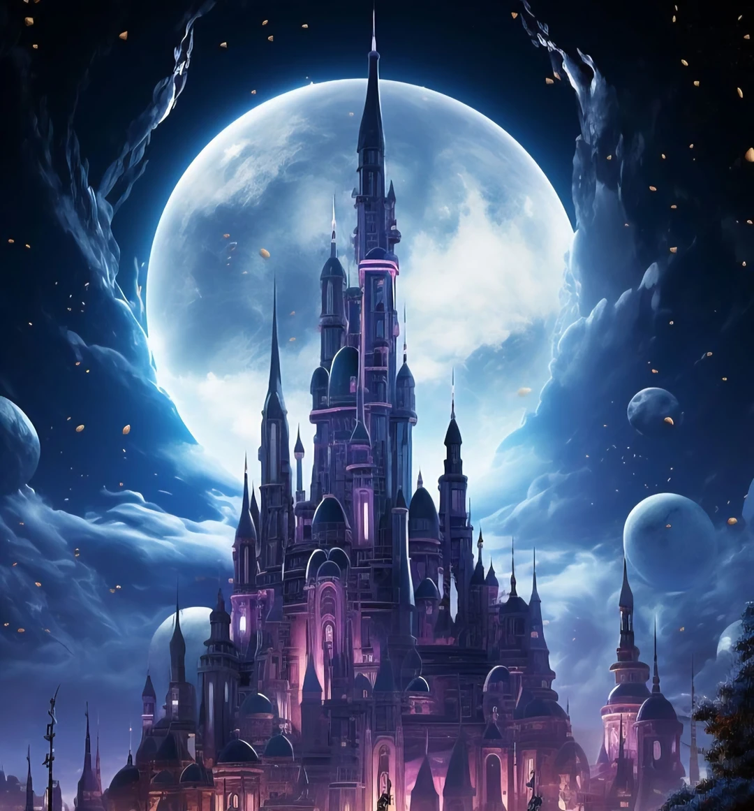 던전 밖에서 보는 판데모니움은 말 그대로 우주가 담긴 성처럼 자색 별빛으로 광을 내는 아름다운 검은 성채였다. 호화로운 성이였다. 내 연인 레이아에 작품이다.