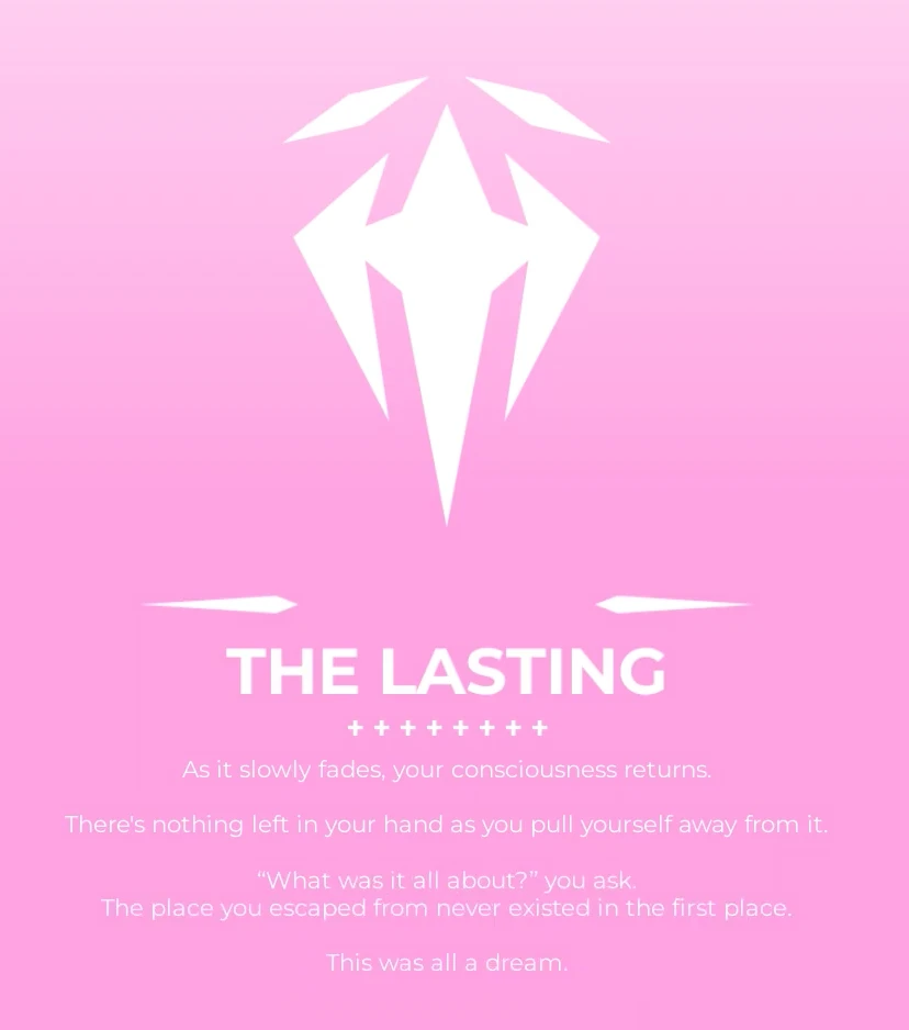 ‘현실’이라는 단어는 날카로운 칼날이 되어 그의 존재를 후벼팠다. ‘깨어난다’는 약속은 달콤한 독처럼 그의 마지막 방어선을 무너뜨렸다. 당신을 둘러싼 분홍색 세계는 이제 완전히 붕괴하여, 의미를 알 수 없는 색의 파편들로 부서져 내렸다. 공중에 떠 있던 모든 것들이 비처럼 쏟아져 내리기 시작했다.