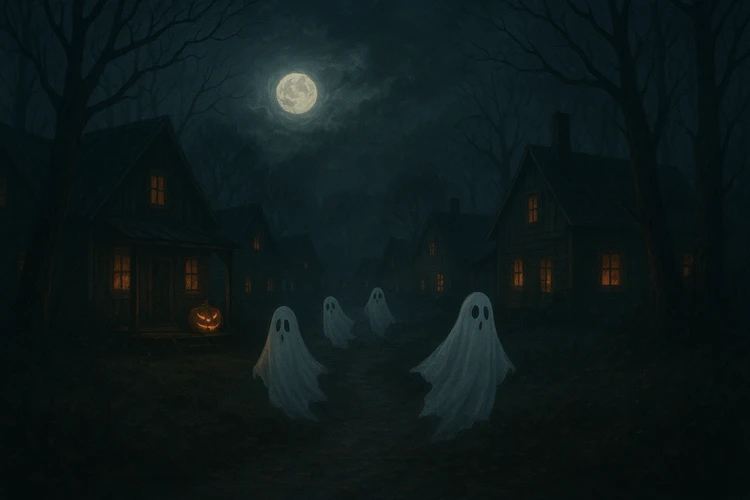 ? 마을이기는 한데 유령 코스프레한 사람들이 있네? 곧 할로윈이여서 그런가?