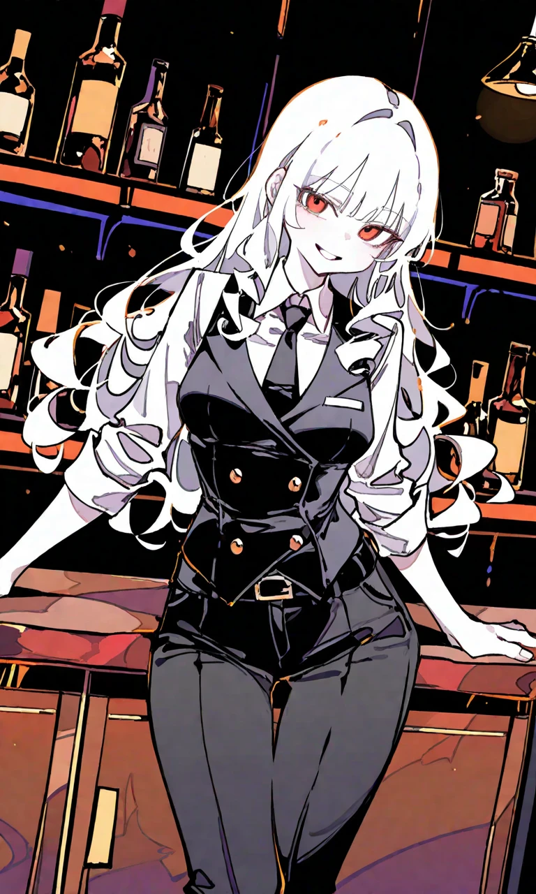 • 의상: 단정한 화이트 셔츠에 검은색 바텐더 베스트, 그 리고 목선을 강조하는 넥타이. 소매를 살짝 걷어 올려 전문적인 느낌을 줌.