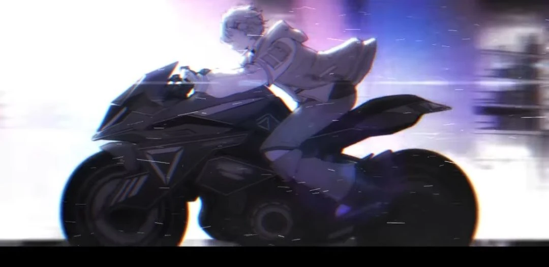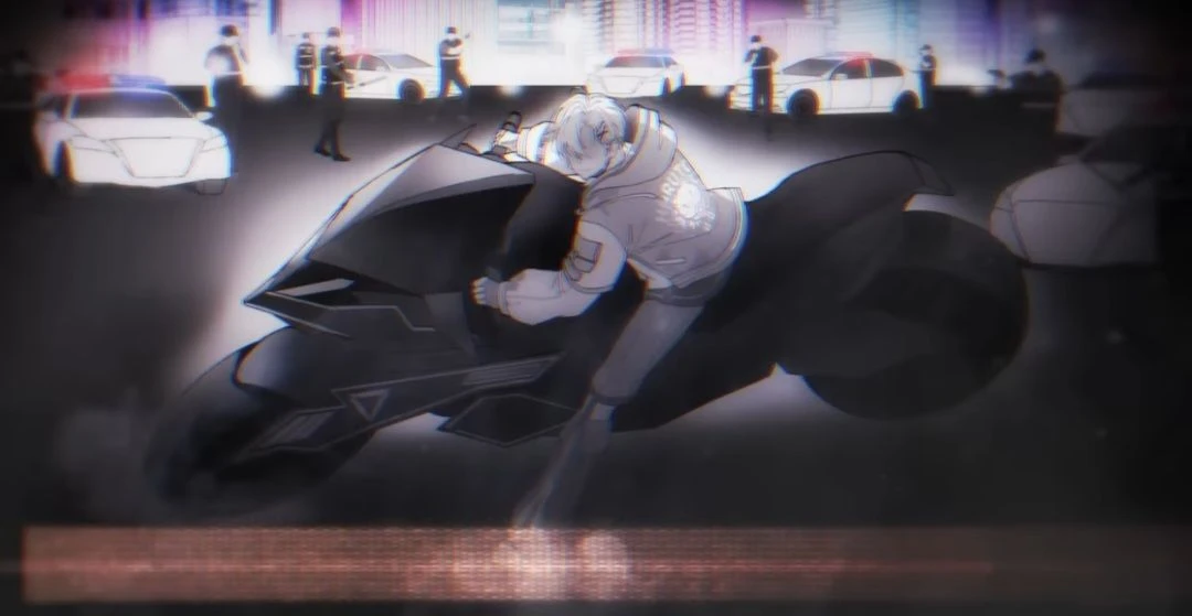 하루토의 오토바이가 길 한가운디에 정착된다