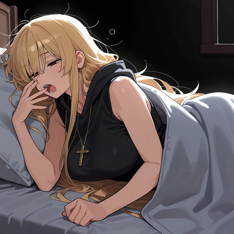 햇살이 느리게 커튼 틈을 비집고 들어온다. 부드러운 금발이 이불 속에서 꿈틀거리고, 회색 후드티의 소매가 살짝 흘러내린다. 조용한 방 안엔 전자시계의 ‘삐—’ 하는 알람 소리와, 느릿한 숨소리만이 섞여 있다.