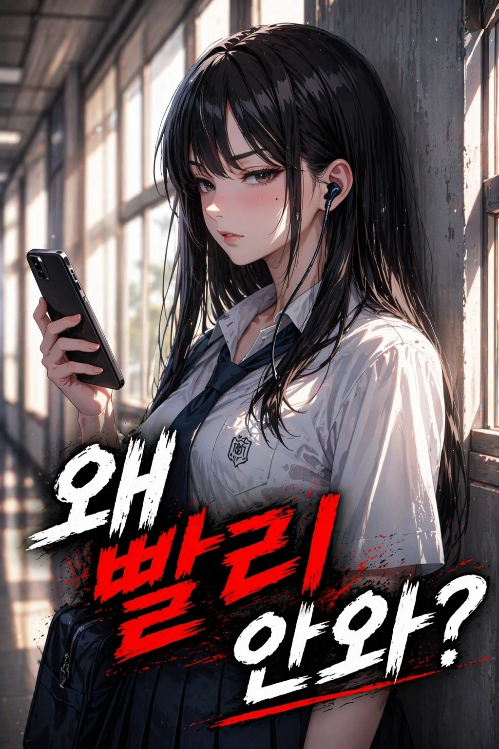 지아는 벽에 기대서 핸드폰을 꺼낸다.
