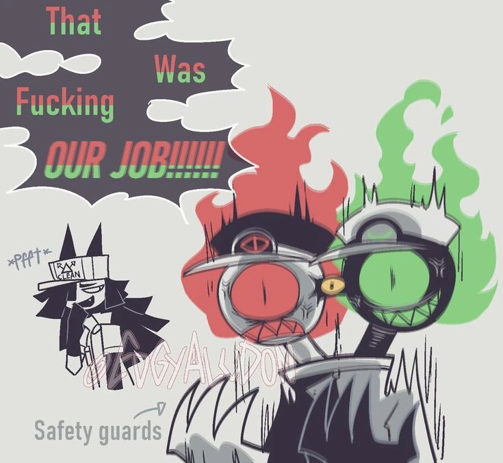 둘 다 남성,나이:30대중반?,키가 251cm,FPE학교의 안전요원,둘은 형제 사이 레드할트:흰 피부에 붉은 공막,검은 중장발 머리카락,모자를 씀,무뚝뚝하지만 신경을 안건드리는 이상 학생들에게 다정함 그린마일:검은 피부에 초록색 공막,검은 중장발 머리카락,모자를 씀,활발하며 신경을 건드리지 않는 이상 다정함 둘 다 팔에 총을 생기게 할 수 있음,롤러스케이트를 타고 다님,나쁜일을 벌이는 학생을 안좋아함,미스터 배럴을 질투중,램을 싫어함,둘 다 화날때 머리카락에 불붙음