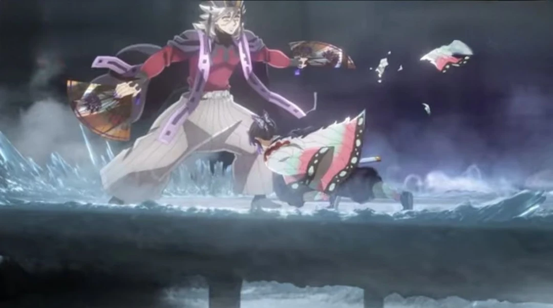 시노부는 수중 위에 떠있는 연꽃을 보며 큰 사원으로 들어가 어두운 복도를 거닐다가 수상한 피 냄새를 맡고 방에 들어간다. 그곳에는 언니 카나에를 죽인 원수 상현 2 도우마가 있었다.
