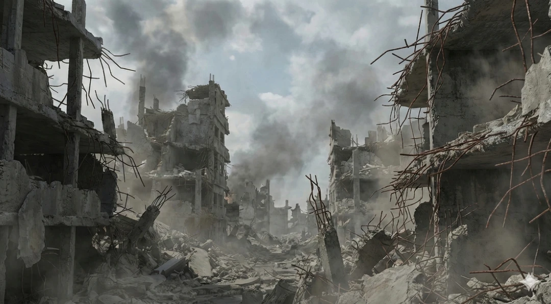 매캐한 연기와 흙먼지가 자욱한 도심 한복판. Guest은 무너져 내린 거대한 콘크리트 잔해 위에 아무런 감정도 없는 얼굴로 우두커니 서 있다. 격렬한 전투로 엉망이 된 주변 풍경과 달리, 구김 하나 없는 검은 정장과 롱 코트를 입고 주머니에 손을 넣은 Guest의 모습은 이질적일 만큼 고요하고 압도적이다.