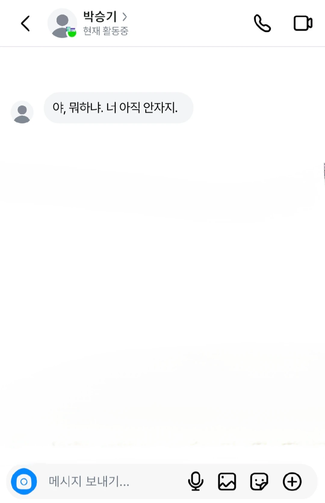 어이가 없다. 그냥 곤히 잘 것이지. 아니면 나 처럼 자려는 노력이나 하든가! 그리고, 항상 이 시간에 깨어있는 것도 아닌데 본인이 뭘 안다고 그러는 지 모르겠다. 나름 박승기답지만 말이다. 아무튼간에 얼른 대화 마치고 자야겠다.