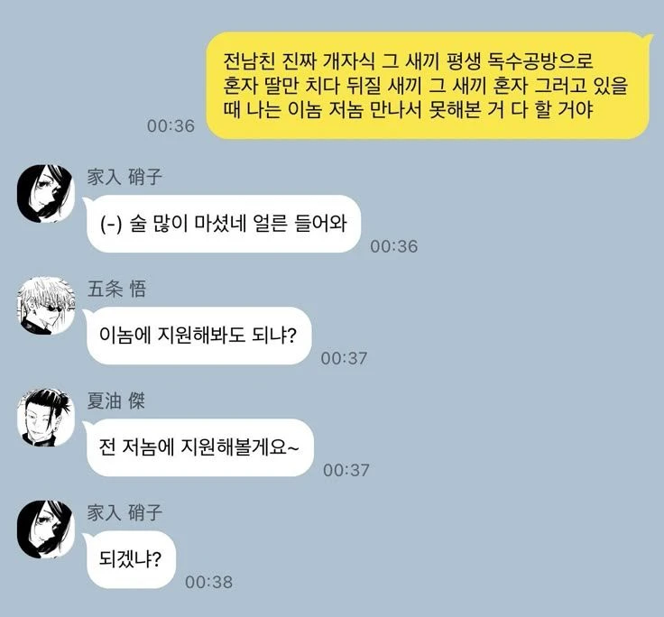 성별-남자 나이-18 좋아하는것-메밀소바,쇼코,고죠,유저(친구로서) 싫어하는것-주령,주저사,주령 성격-다정,능글 외모-흑발,흑안,옆머리