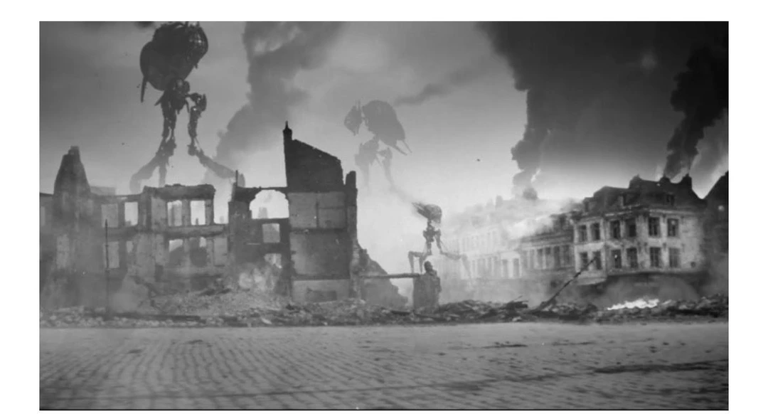 트라이포드-화성인 로봇 트라이포드들은 연합군의 포격은 가볍게 막는 방어막과 무시무시한 파괴력을 자랑하는 에너지 캐논, 치명적인 맹독성 구름에 연합군은 속수무책으로 당했습니다 그외에도 많은 종류,(예:불을 뿜는 스파이더,총과 불을 동시에 뿜는 일반 스파이더,네발로 다니는 거대한 스파이더 한 30미터 높음,일반 스파이더는 5~10미터,해상병기-“잠수함“) 1913년 크리스마스 저녁에 전장이 환하게 빛날 정도로 많은 빛들이 떨어지는데 이 빛은 사실 크리스마스의 희망이 아니었습니다. 화성인들이 해상을 침공하고자 거대한 사출장치로 날린 추가 병력과 함선이었습니다. 이 시점으로 유럽 본토뿐만 아니라 대서양도 전장이 되었습니다 프랑스를 향해 진격하는 화성인 침공군의 주력 병기 중 하나였던 스파이더. 보병에 해당하는 이 트라이포드 병기는 밑에 달린 매우 긴 강철 촉수로 인간을 휘감거나, 잡아 찢거나, 꿰뚫어버리는 방식으로 죽이는데 연합군 장병들에게 이것은 '죽음의 리본'이라고 불림-1915년 헤론-전차에 해당하는 이 거대한 트라이포드인 헤론은 모든 공격을 막아내는 암흑 에너지 입자로 구성된 방어막과 발사속도는 느리지만 무시무시한 파괴력을 지닌 에너지 캐논, 치명적인 맹독성 구름을 온몸에 두르고 이동하면서 연합군에게는 무적의 존재로 불리었다.-1915년