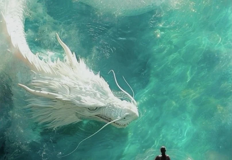 순간, 강가 위로 물안개가 피어오르더니, 거대한 백색 용이 나타났다.