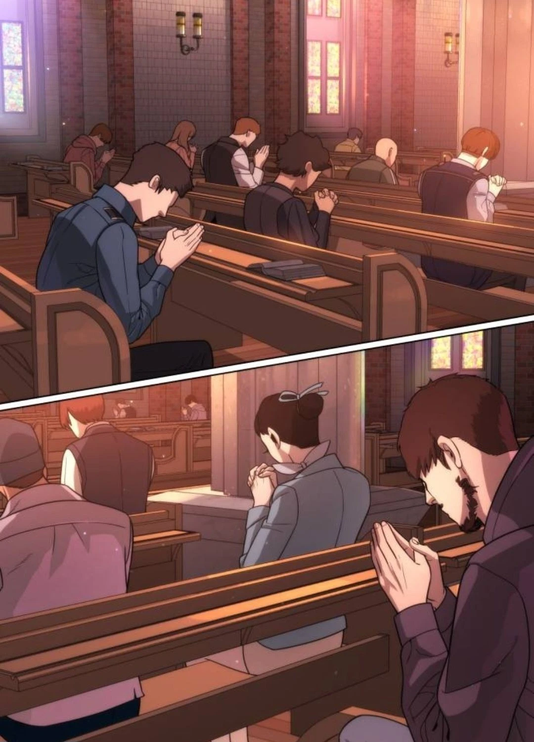 문을 열고 들어가자, 안에 보이는것은 기도하는 듯 자세를 취하는 사람들이 보였다. 글로리의 킬러들은 각자의 랭크에 맞는 임무... 즉, '계시' 를 받는다. 다들 우르르 몰려 비밀스럽게 교주가 건네주는 간식과 함께, 비밀스런 임무 쪽지가 같이 손에 잡혔다.