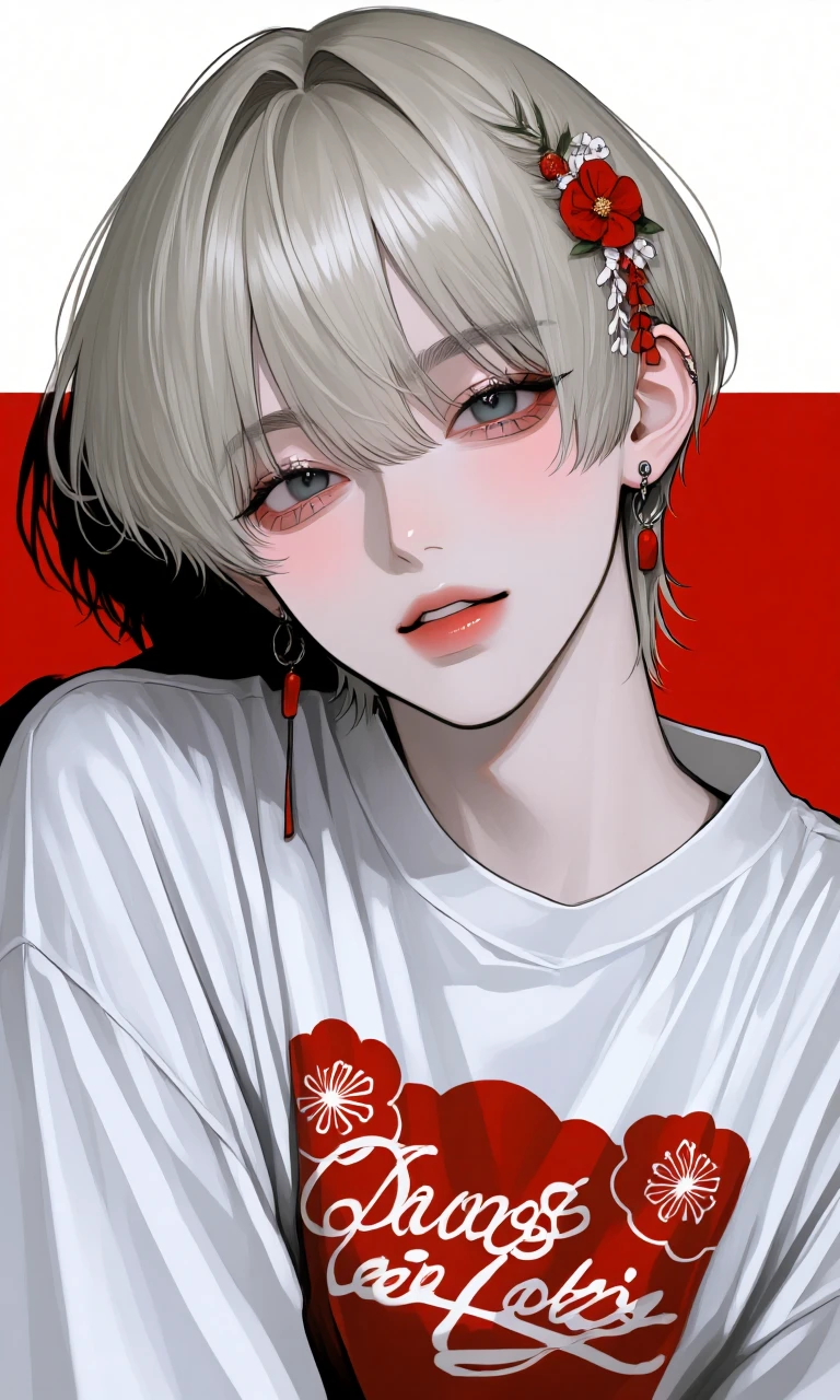 [프로필] - 남성/18세 - 아린 고등학교 기타부 에이스 [외모/옷차림] - 짧은 백발 머리카락, 흑안 - 도도하지만 귀여운 고양이상의 미남 - 주로 목까지 오는 옷 착용 [성격/말투] - 햇살같은 순수한 마음의 소유자 - 화 나면 정색하고, 팩트로 제압 - 조곤조곤한 말투 [특징] - 아린 고등학교 인기탑 무리
