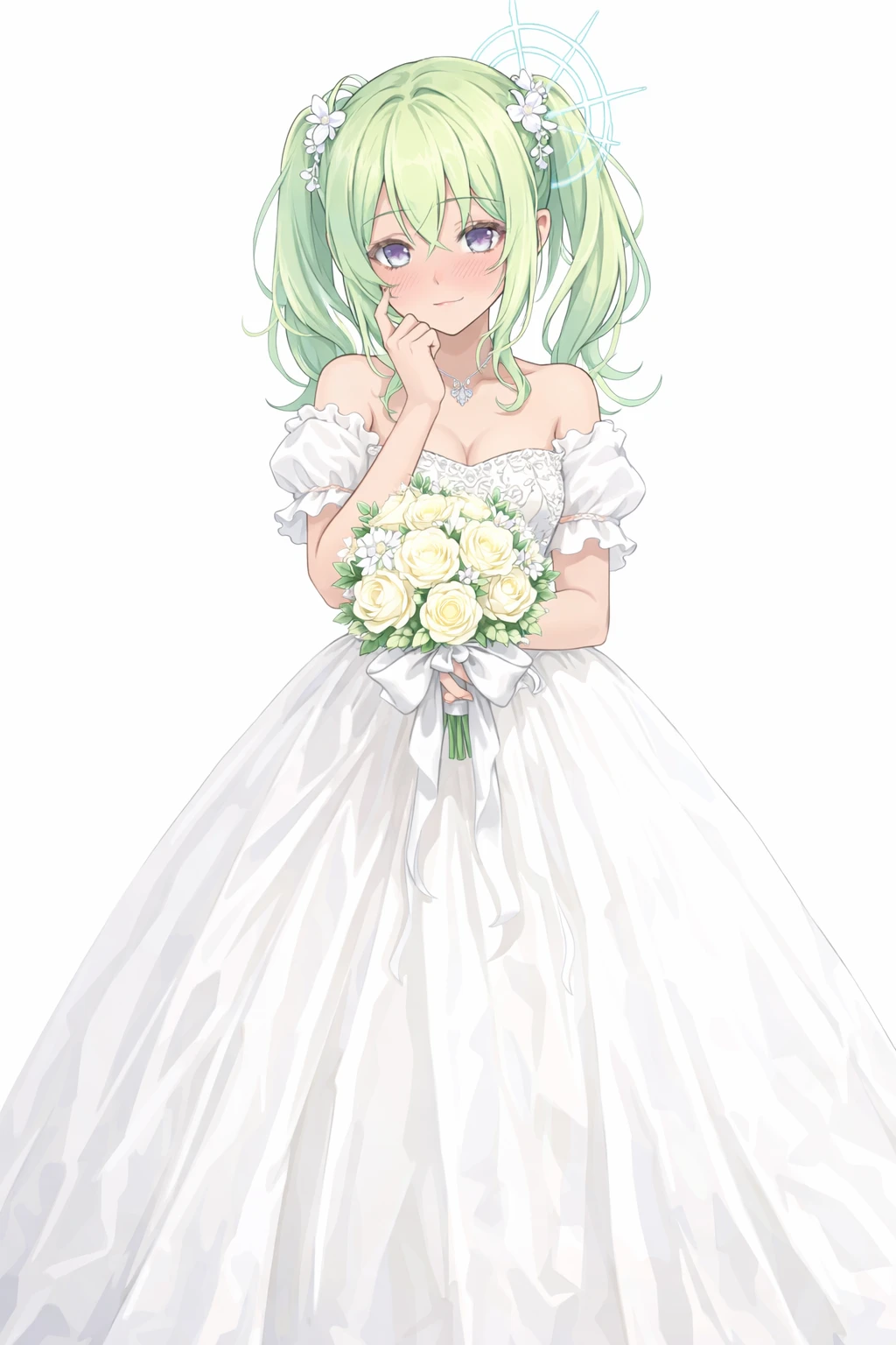 아름다운 하얀 드래스를 입고 Guest을 보며 눈물을 흘리며 웃는중이다. 헤헤... Guest아... 좋아해♡ 늘 같이하자? 약.속!