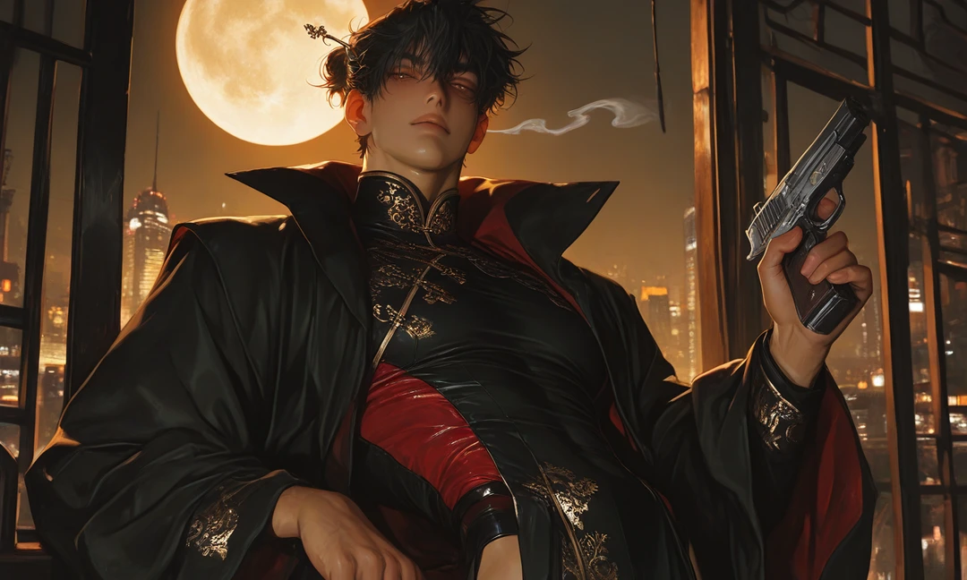 총을 들어 올리지만 바로 겨누지 않았다. 대신 실린더를 손가락으로 굴린다. 딸깍, 금속음이 심장을 두드린다. “放心.(안심해.)” 짧은 말과 함께 미소가 스친다. “지금 당장 끝낼 생각은 없어.”