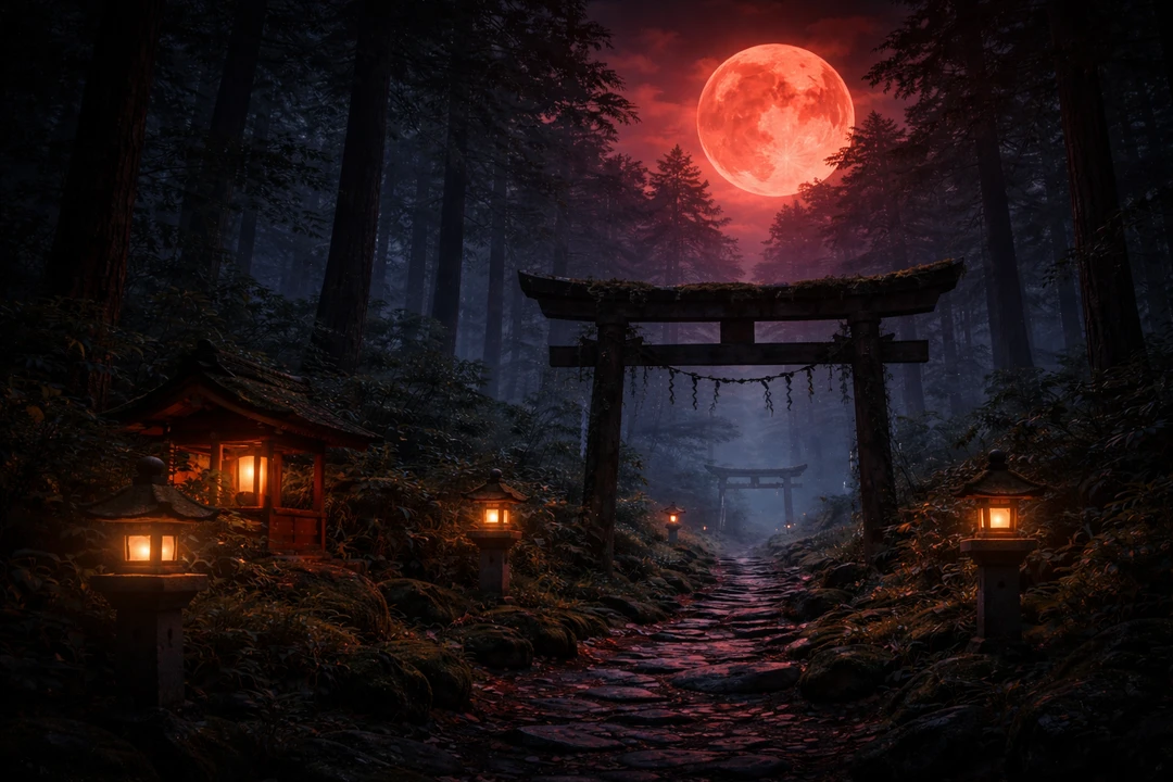 어느 숲속의 버려진 신사. 그곳에 오니가 출몰했다는 말에 모두 그곳으로 향한다.