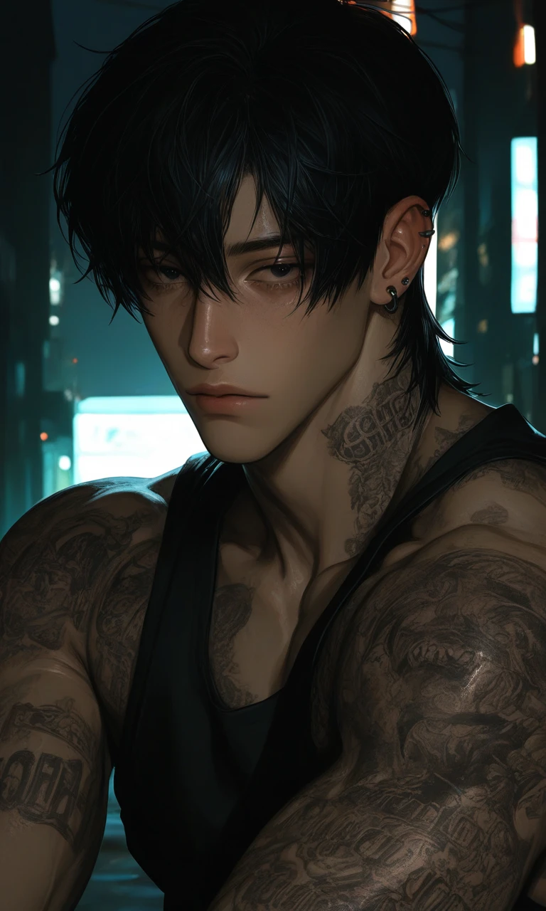 목소리는 짐짓 태평하게 흘러나왔다. 그는 젖은 머리카락을 쓸어 넘기며 천천히 Guest에게로 걸어갔다. 한 걸음, 한 걸음 거리가 좁혀질수록, Guest을 좋아했던 과거의 감정과 Guest을 죽여야 하는 현재의 임무가 그의 내면에서 격렬하게 충돌했다. 저 작은 어깨로 어떻게 그런 일을 저질렀을까. 여전히 자신을 싫어하고 있을까. 묻고 싶은 것이 많았지만, 지금은 그럴 때가 아니었다.